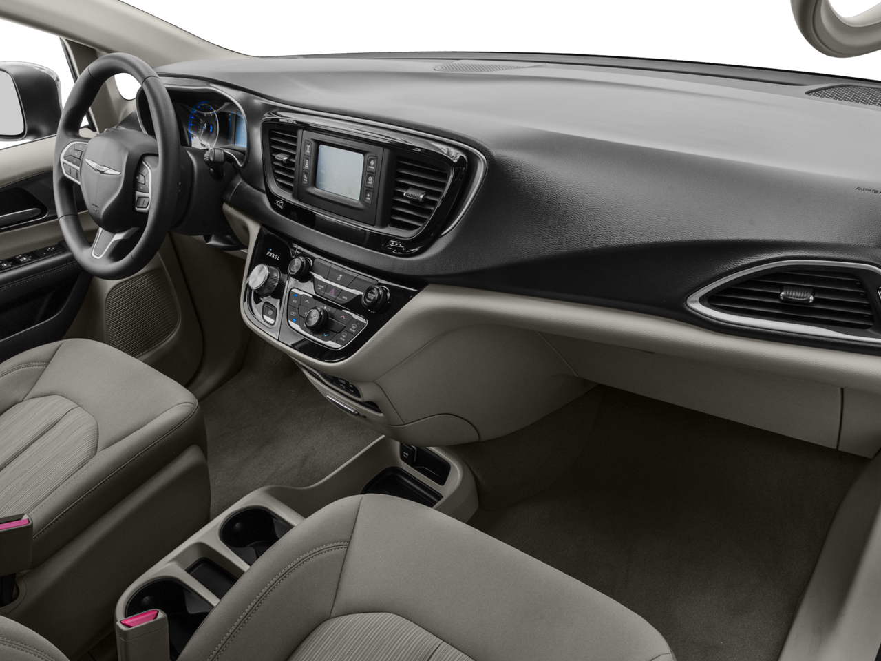 Step inside the Pacifica Touring and discover a cabin that prioritizes comfort and convenience. The cloth bucket seats provide ample support, while the split-folding third-row seat offers versatile cargo space. Stay connected with the integrated voice command and Bluetooth® technology, and enjoy the ambient lighting that creates a welcoming atmosphere.