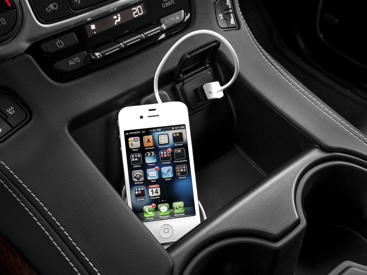 - Audio system, 8" diagonal Color Touch screen with IntelliLink AM/FM/SiriusXM with USB ports and auxiliary jack with seek-and-scan and digital clock, includes Bluetooth® streaming audio for music and select phones; voice-activated technology for radio and phone; and Shop with the ability to browse, select and install apps to your vehicle. You can customize your content with audio, weather and more. Featuring Apple CarPlay and Android Auto capability for compatible phone; 5 USB ports and 1 auxiliary jack
