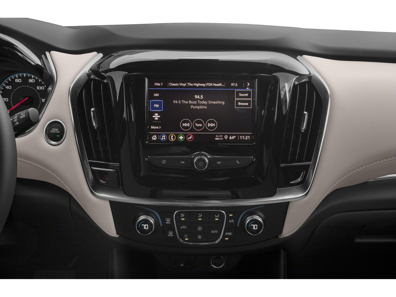 - Audio system, Chevrolet Infotainment 3 system 7" diagonal color touchscreen, AM/FM stereo. Additional features for compatible phones include: Bluetooth® audio streaming for 2 active devices, voice command pass-through to phone, Apple CarPlay and Android Auto capable (FWD only.)